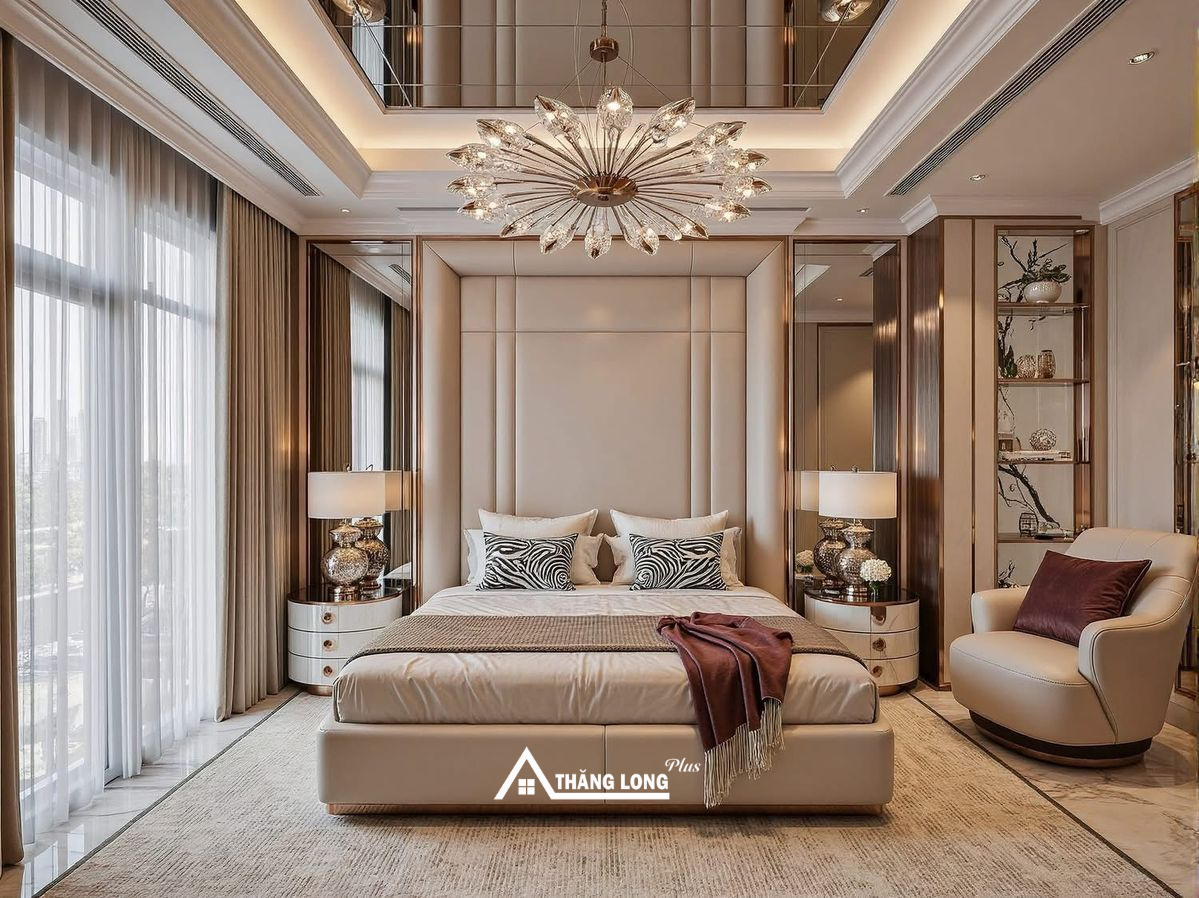 Phòng ngủ Master là phòng ngủ chính trong ngôi nhà, thường dành cho chủ nhà hoặc cặp vợ chồng. Đây là không gian có diện tích rộng nhất trong các phòng ngủ, được thiết kế tiện nghi với nội thất cao cấp, đáp ứng cả nhu cầu nghỉ ngơi và thư giãn. Phòng ngủ Master thường đi kèm với các tiện ích như phòng vệ sinh riêng, khu thay đồ, góc làm việc hoặc khu vực thư giãn.